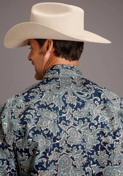 Ariat Men’s Noah Classic Deep Blue With Skulls And Long Button Down Long Sleeve