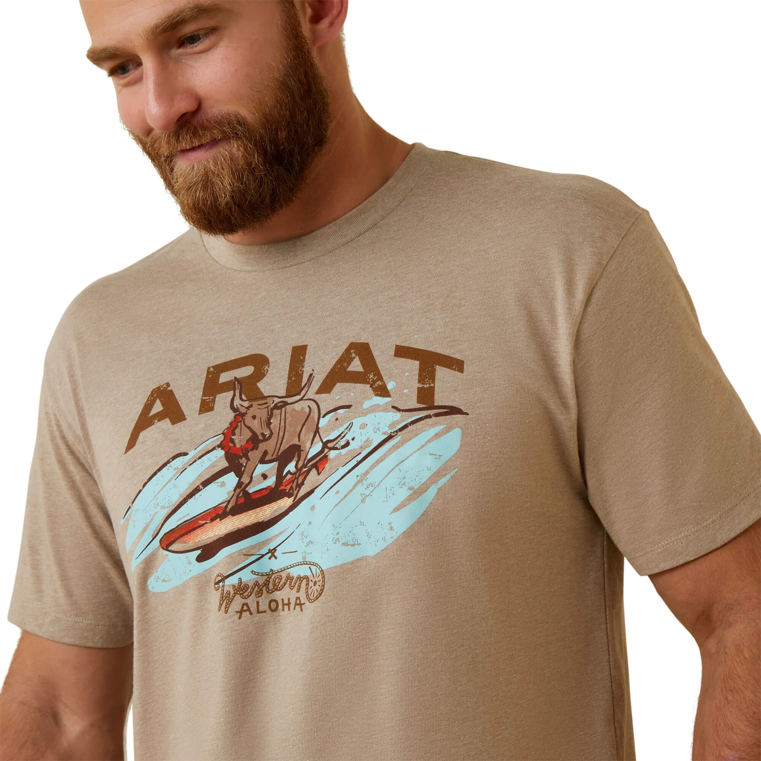 Oatmeal Heather Short Sleeve Surf & Turf Western Aloha T-Shirt.