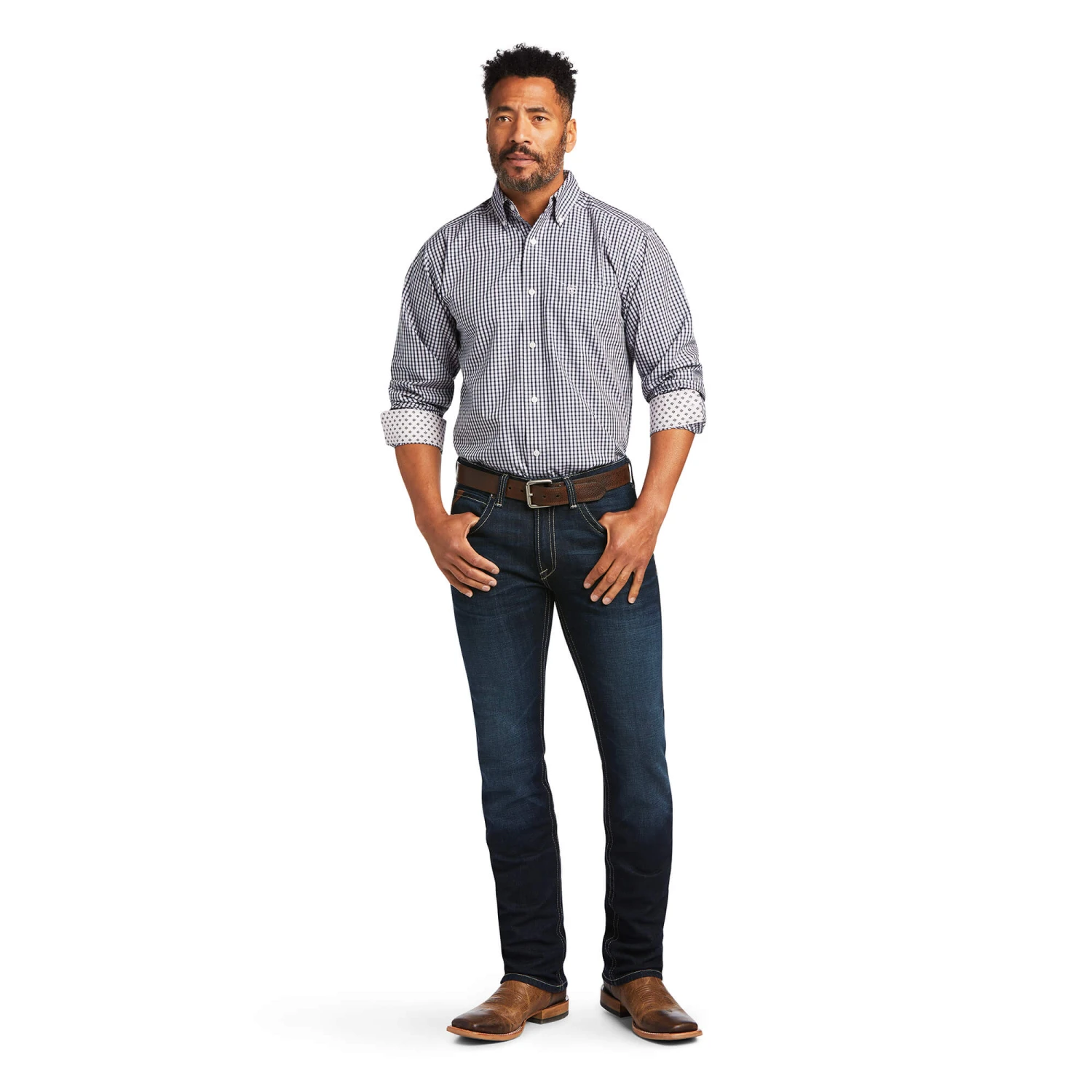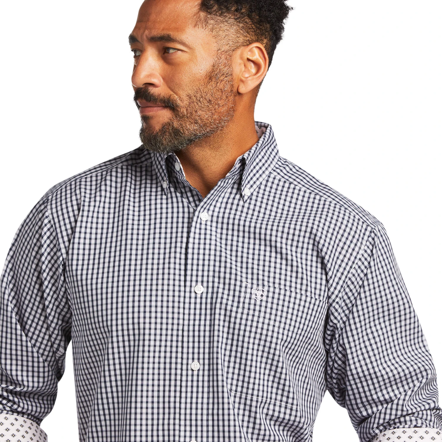 English Lilac Plaid Long Sleeve Wrinkle Free Dandre Fitted Button Down Shirt.