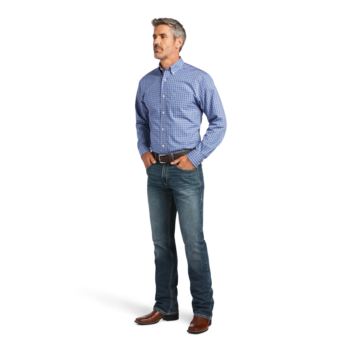 Reykjavik Blue Plaid Long Sleeve Wrinkle Free Ezrah Fitted Button Down Shirt.