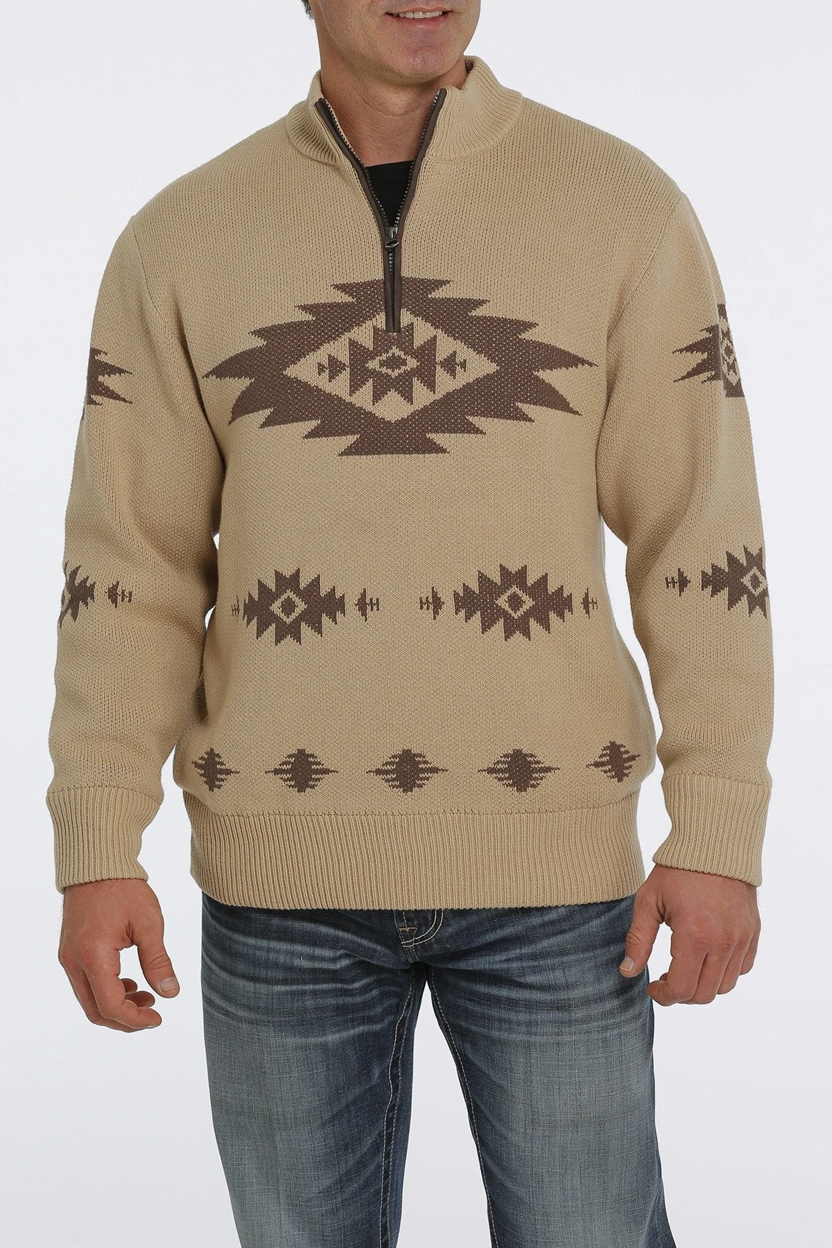 Khaki Southwest 1/4 Zip Aztec Print Pullover Sweater.