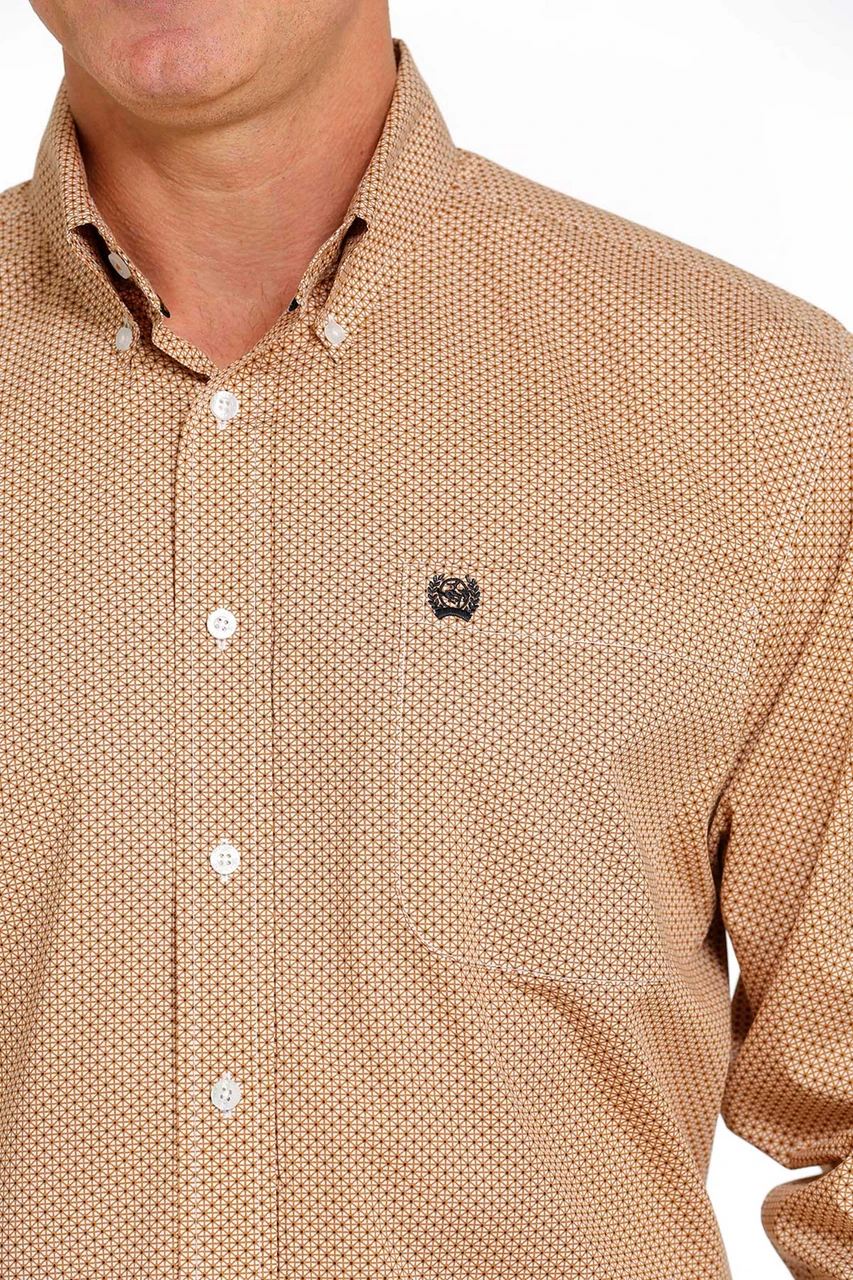 Cinch Men’s Brown With Dots Button Down Long Sleeve