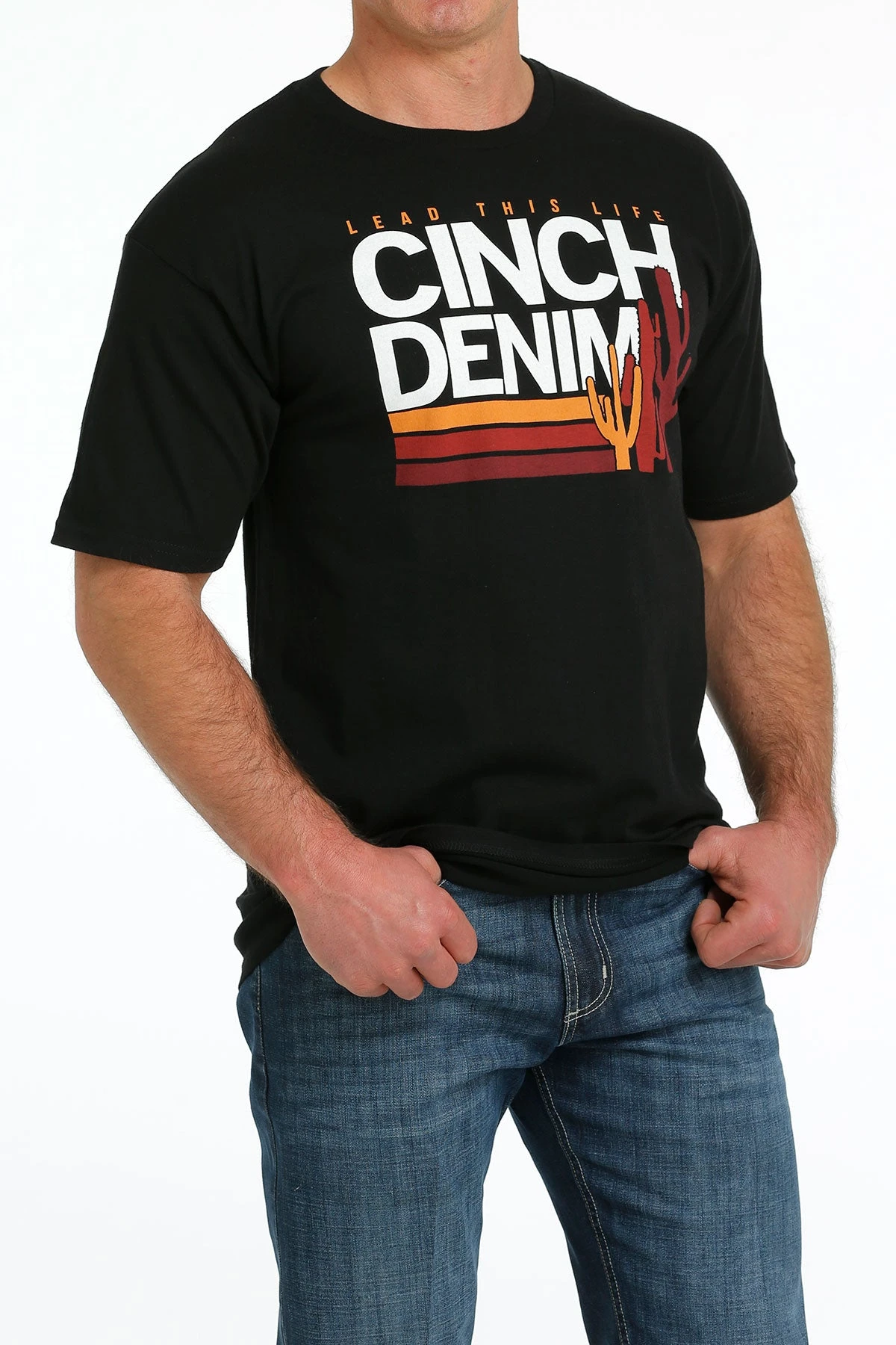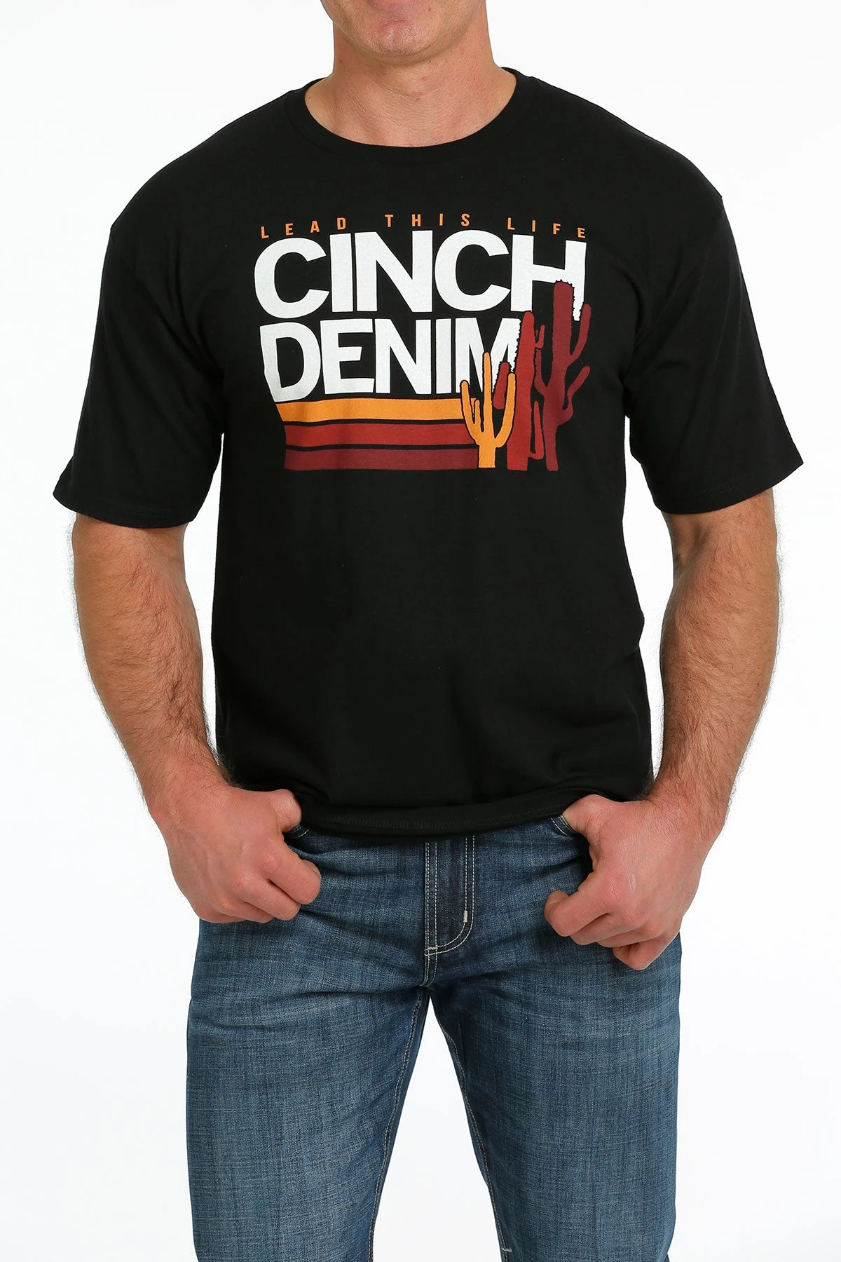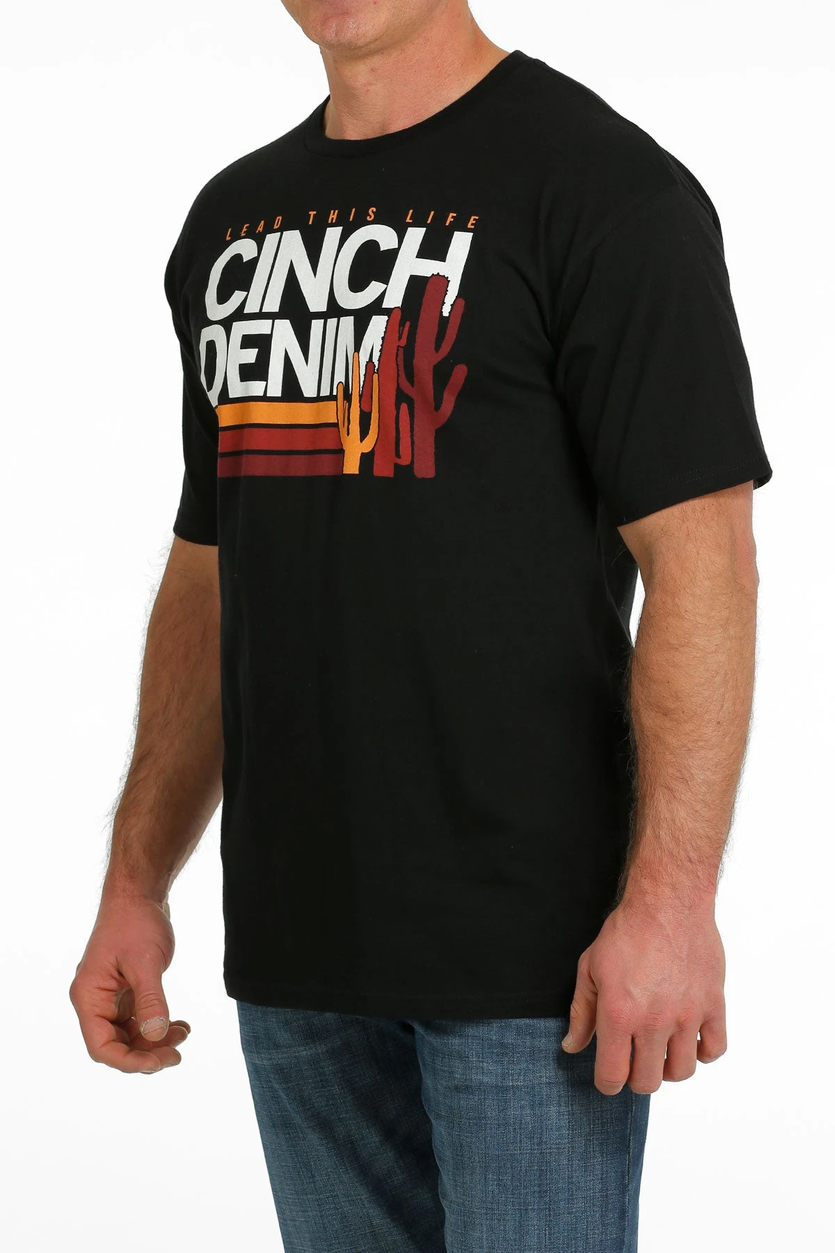 Cinch Men’s Black Cactus With Logo Print Short Sleeve T-Shirt