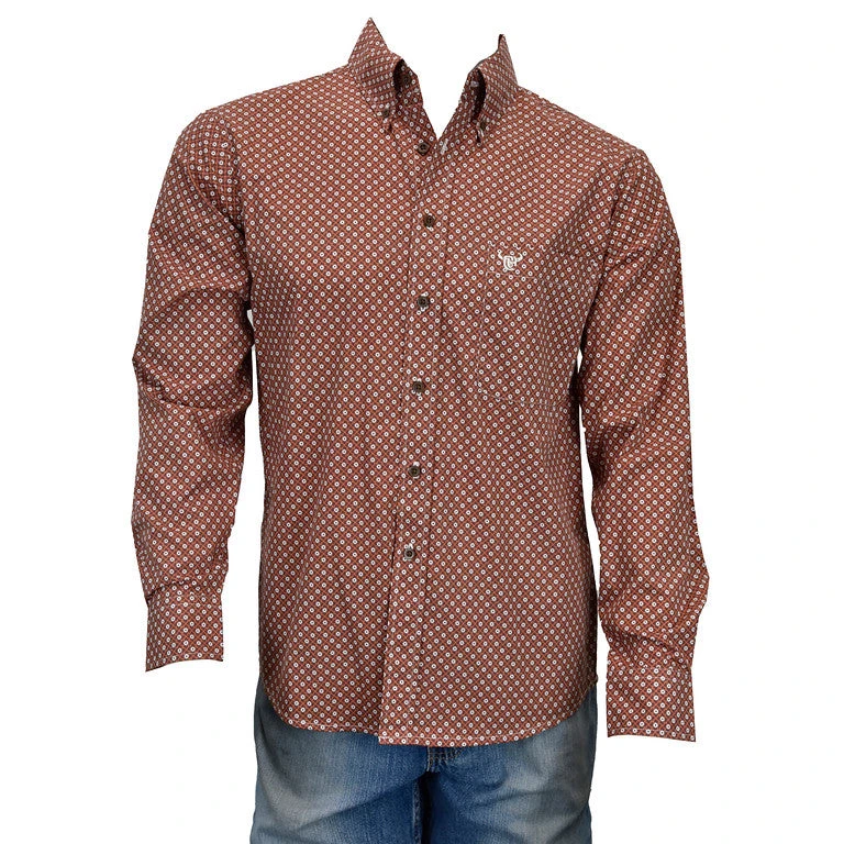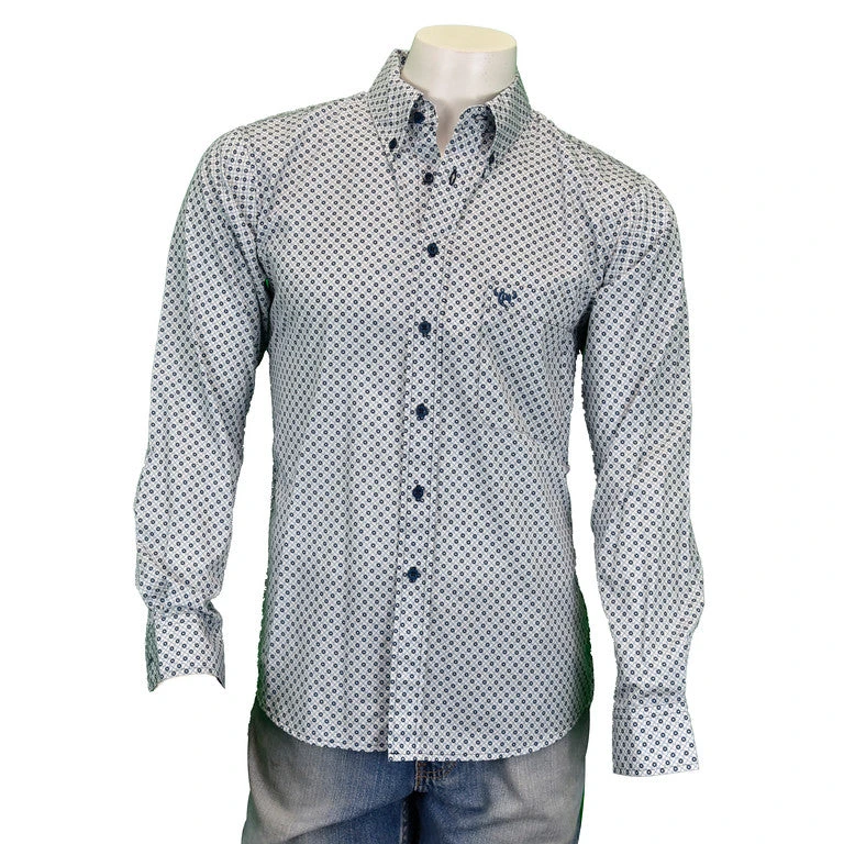 Square and Diamond Print Long Sleeve Button Down Shirt.