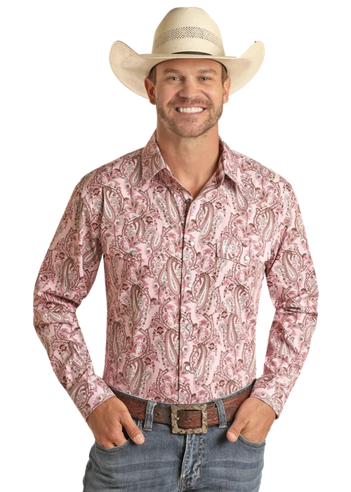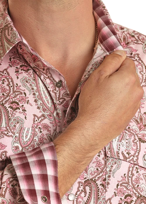 Pink Paisley Long Sleeve Snap Front Shirt.