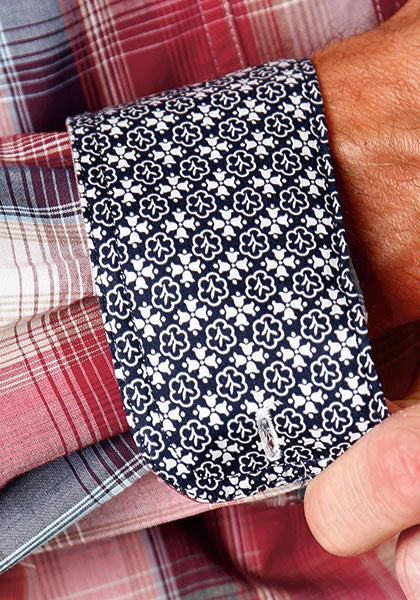 Red Apple and Blue Plaid Long Sleeve Button Down Shirt.