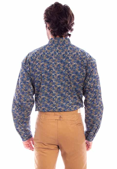 Blue Print Long Sleeve Button Down Shirt.