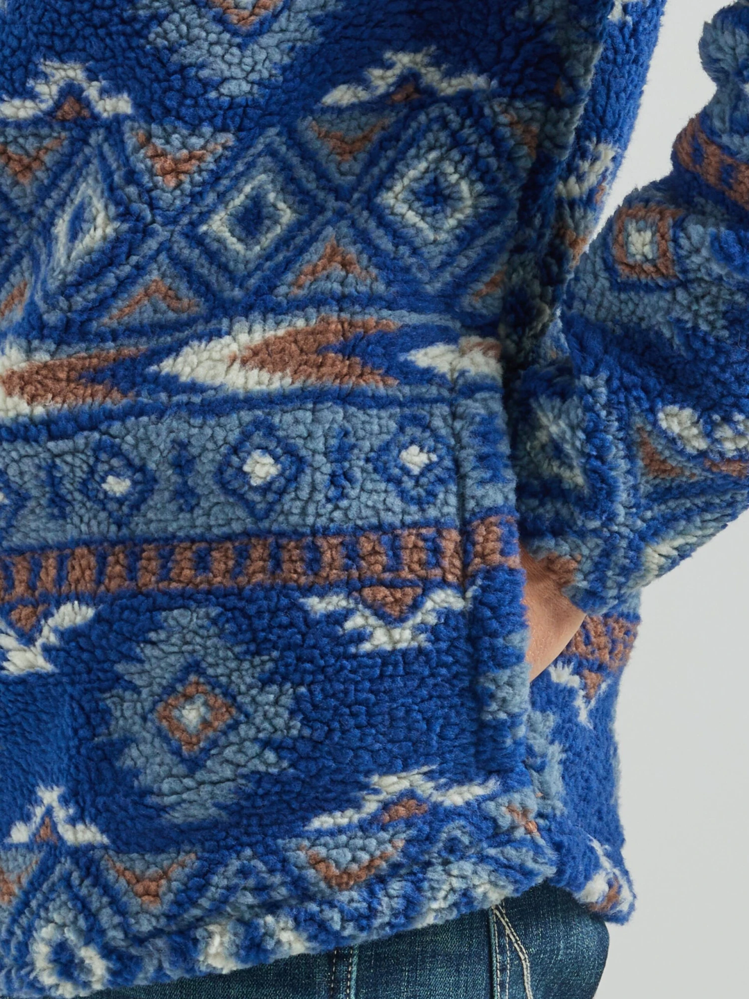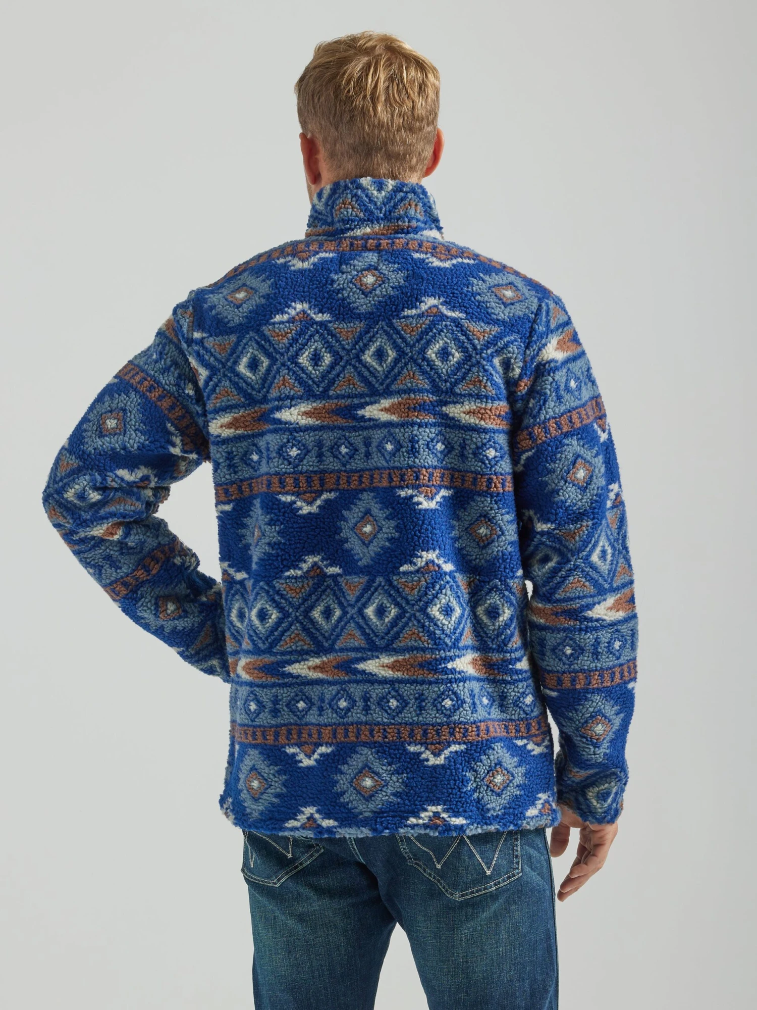 Pageant Blue Southwest Print 1/4 Zip Sherpa Pullover.