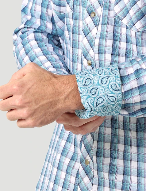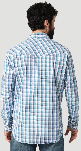 Blue Squared Plaid Long Sleeve Competition Advanced Comfort Snap Front Shirt.