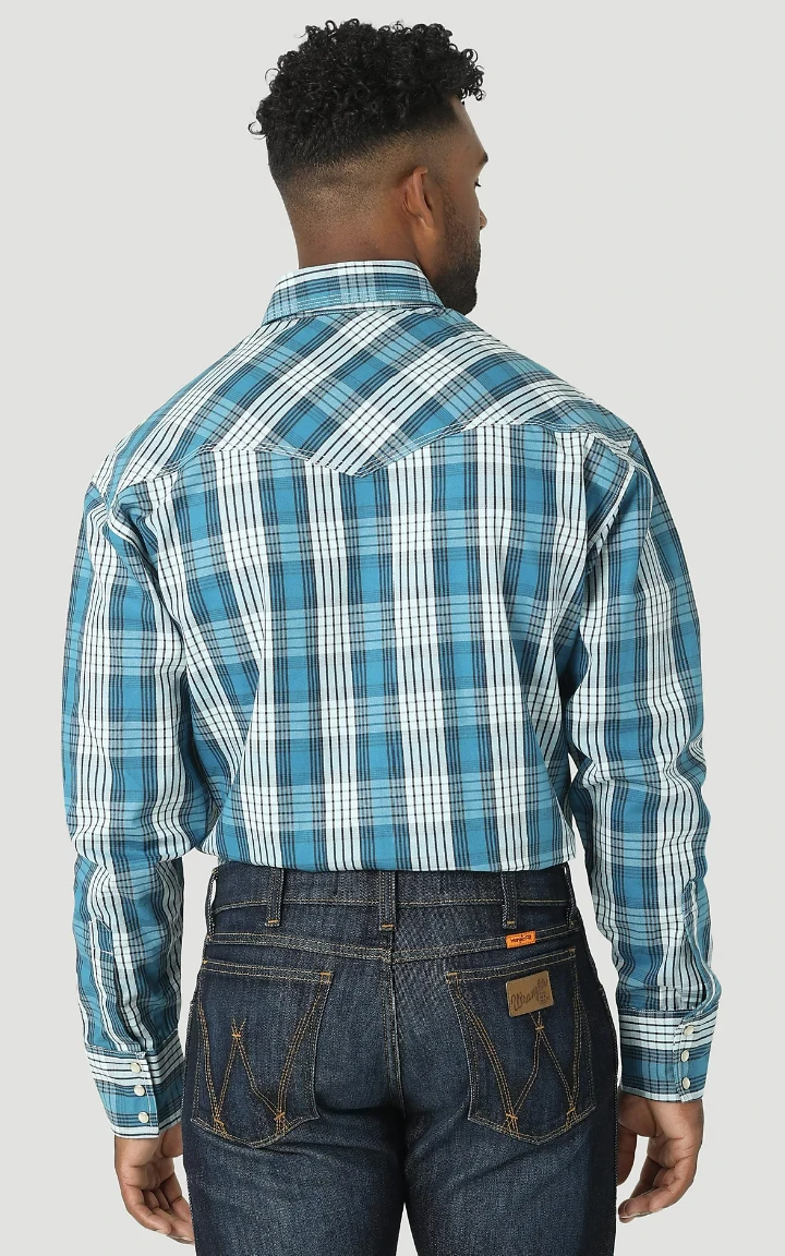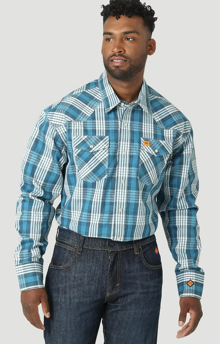 Aqua Plaid Long Sleeve Fire Resistant Snap Front Shirt