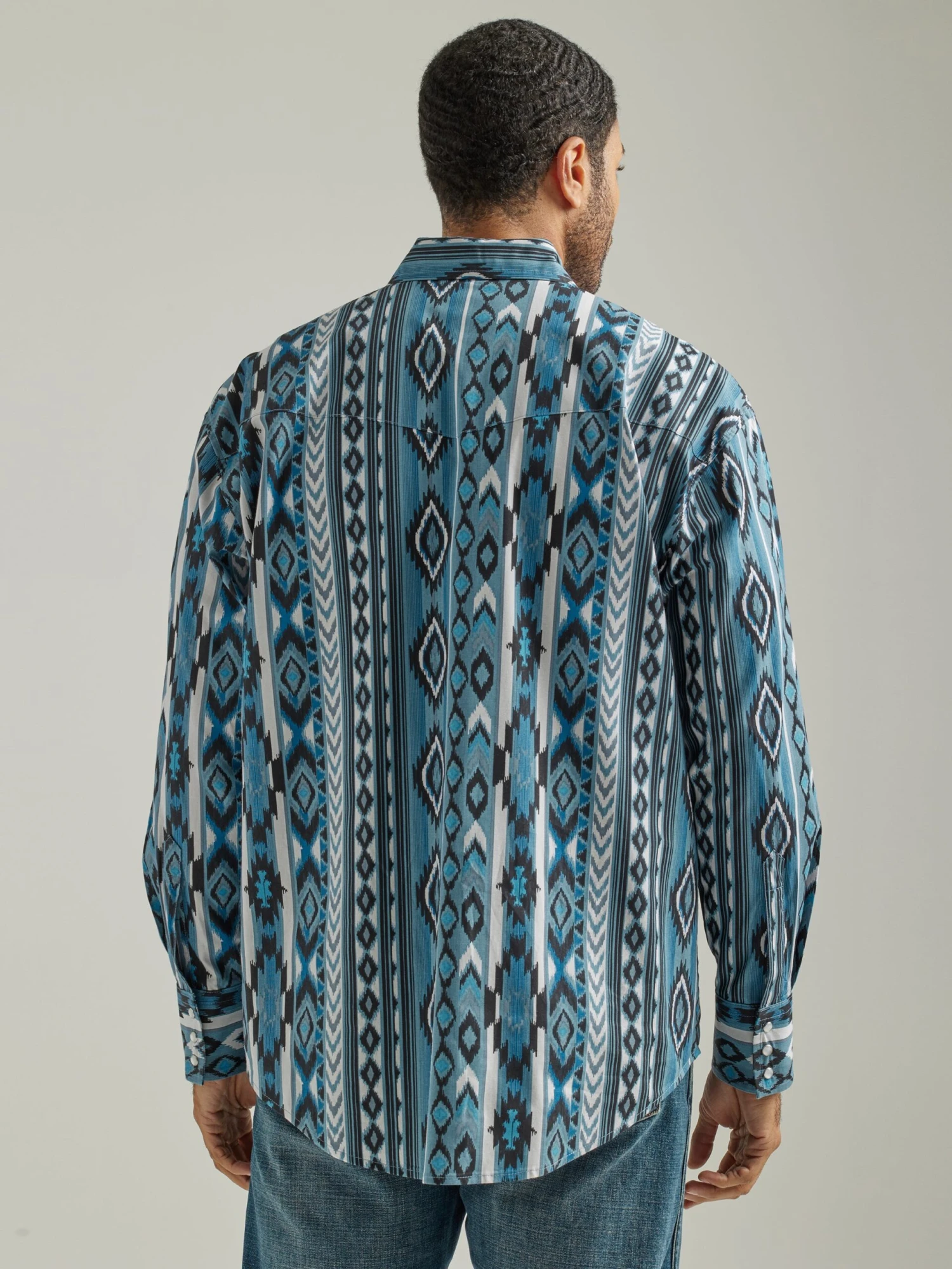 Watery Grey and Blue Aztec Long Sleeve Checotah Snap Front Shirt.