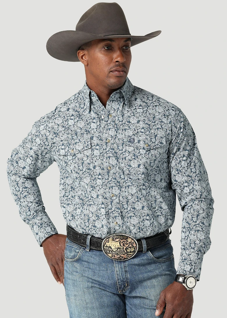 Steel Paisley Long Sleeve Snap Front Shirt.