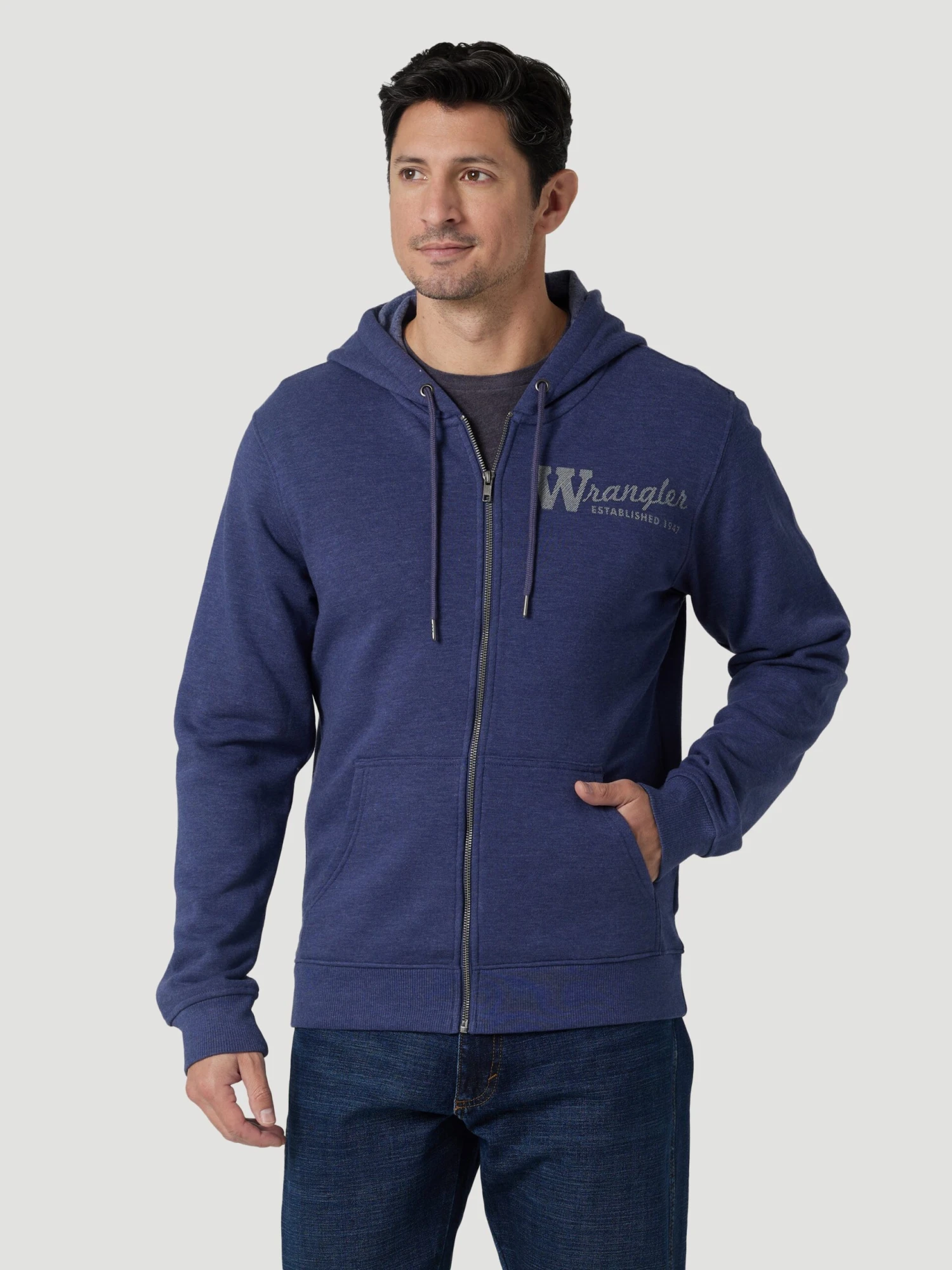 Denim Heather Logo Zip Hoodie.