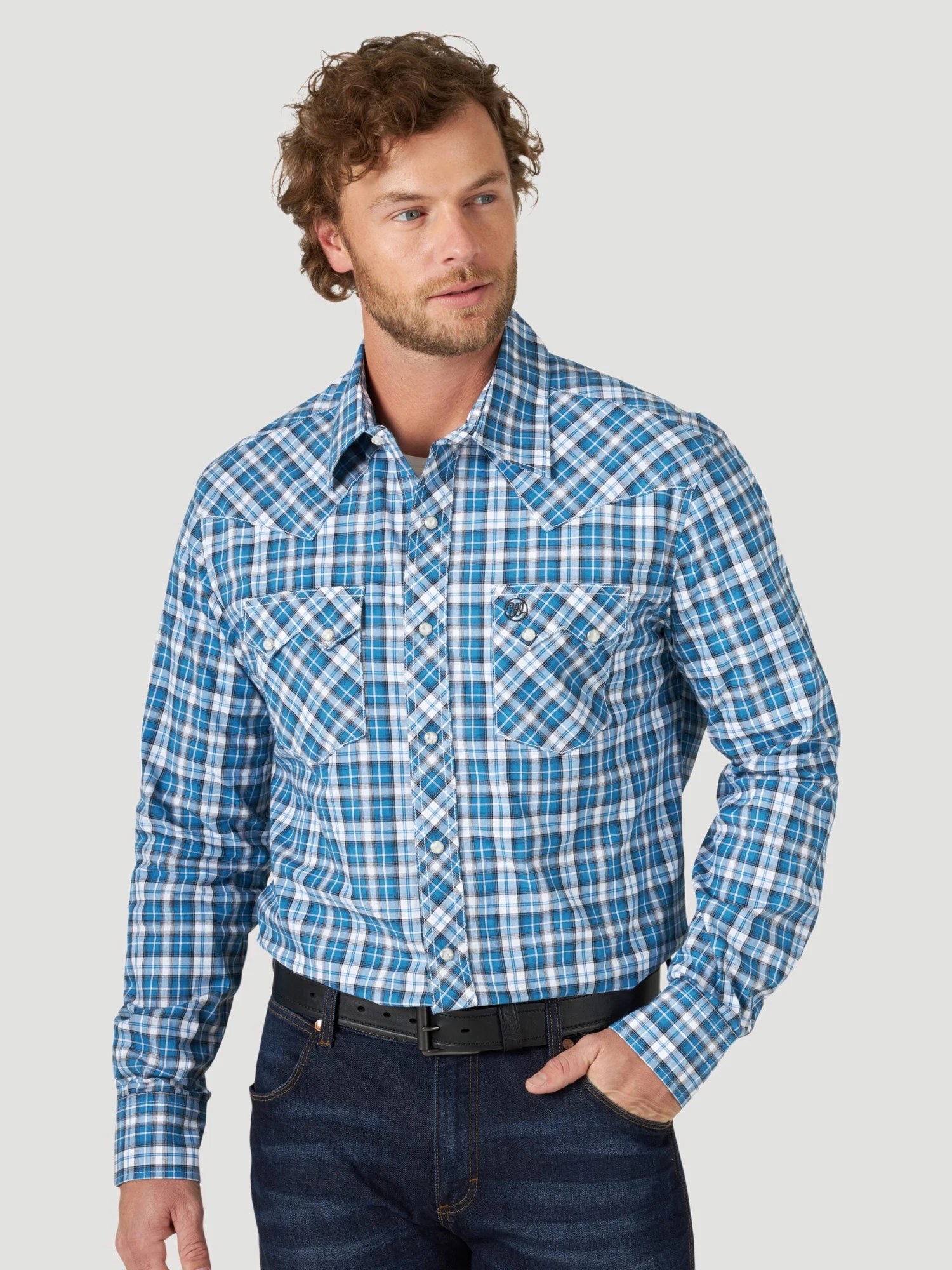 True Blue Plaid Long Sleeve Snap Front Shirt.