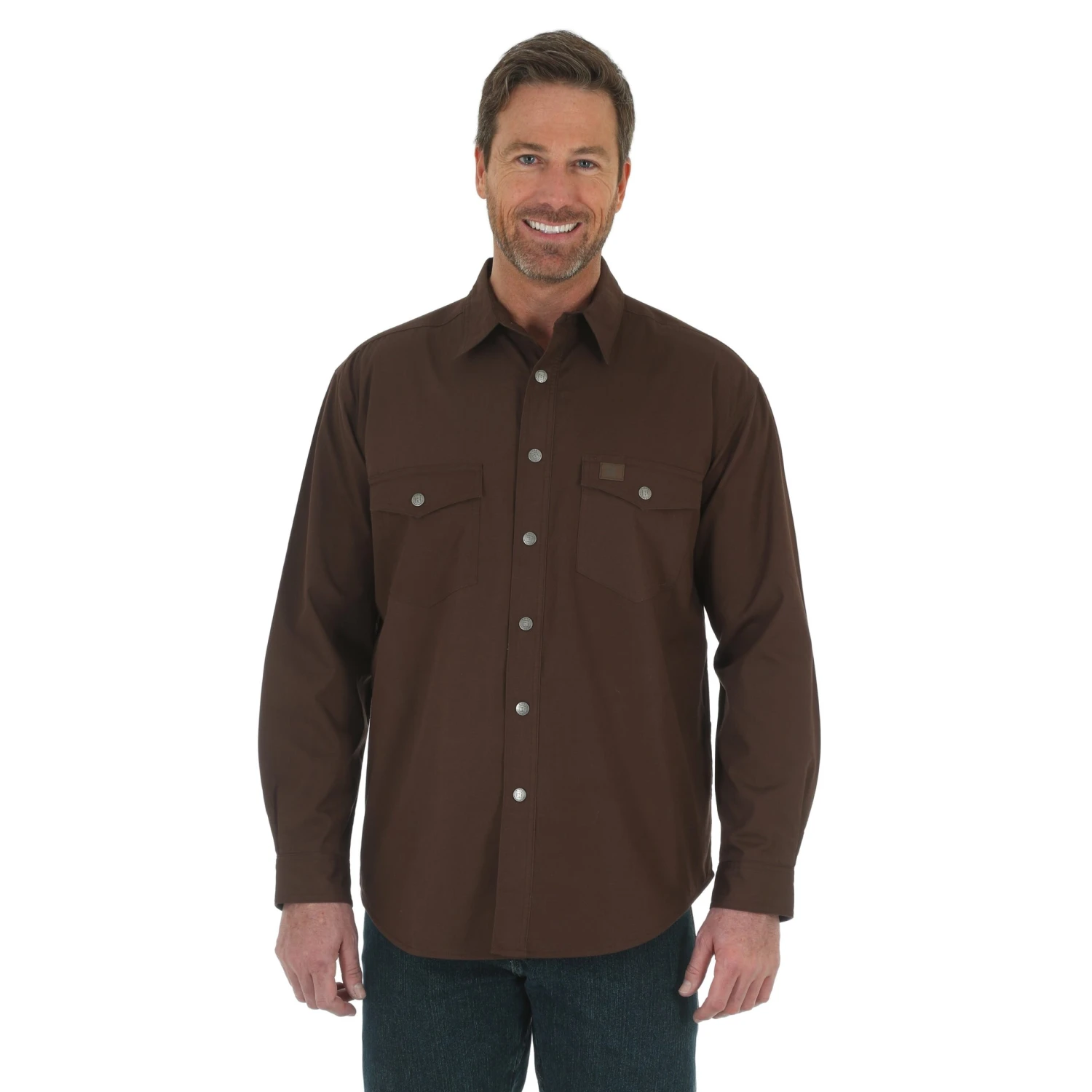 Chocolate Brown Long Sleeve Flannel Lined Ripstop Shirt.